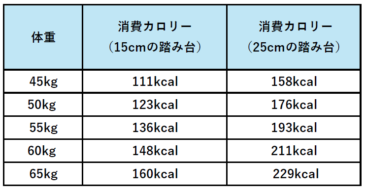 ※あくまで目安。踏み台の高さやテンポ、個人の代謝で前後します。